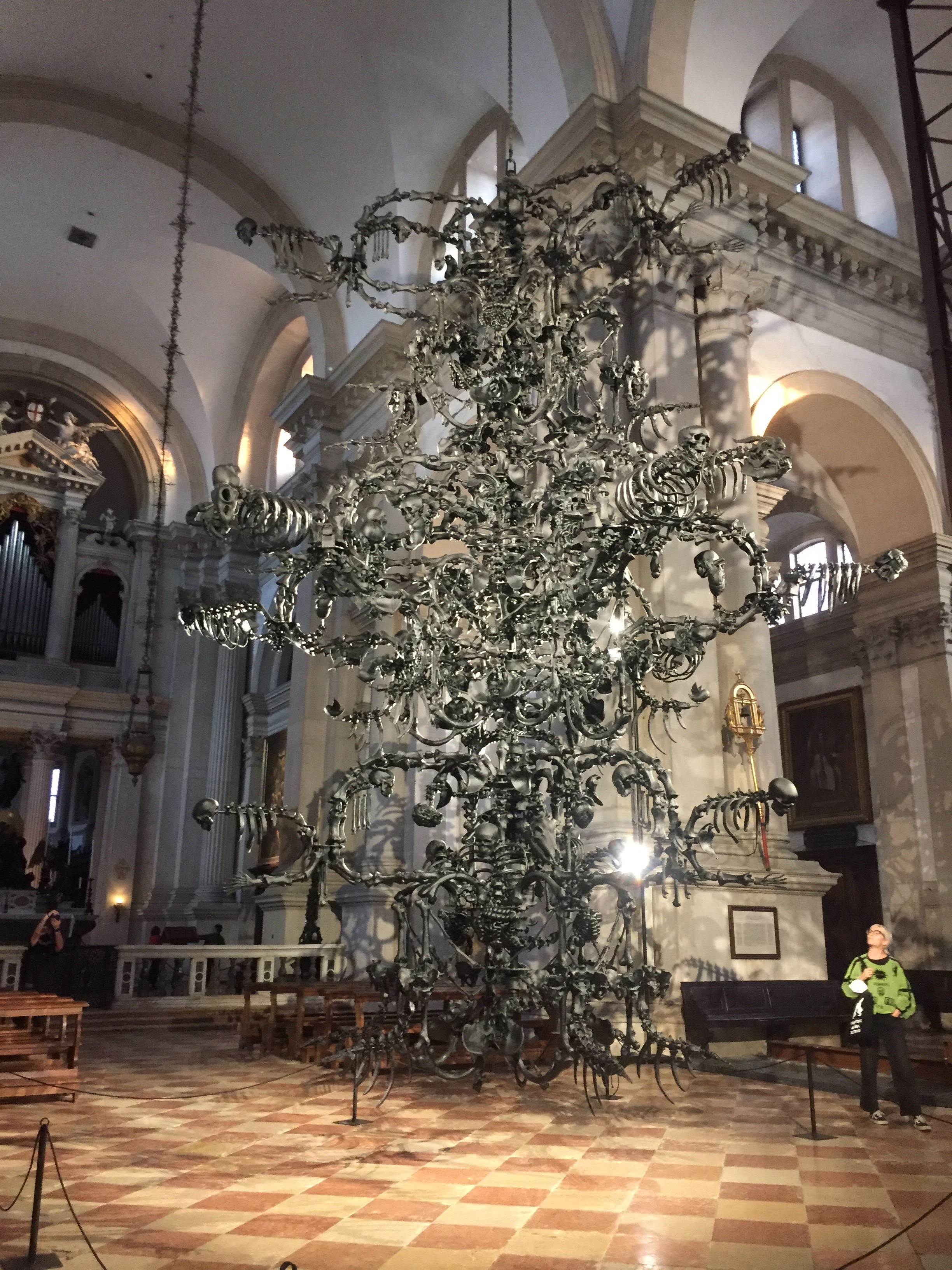 La obra principal consiste en una pieza creada en la misma Venecia, específicamente en la isla de Murano, la escultura más grande creada en vidrio que se conozca, una araña de 9 metros de altura y unos 6 metros de ancho. Es una obra que tuvo unos tres años de trabajo previo. Se trata de una serie de piezas ensambladas de un vidrio negro, bastante opaco y que no tiene transparencias, no deja pasar la luz. Son 2 mil piezas y 2700 kilos de peso.