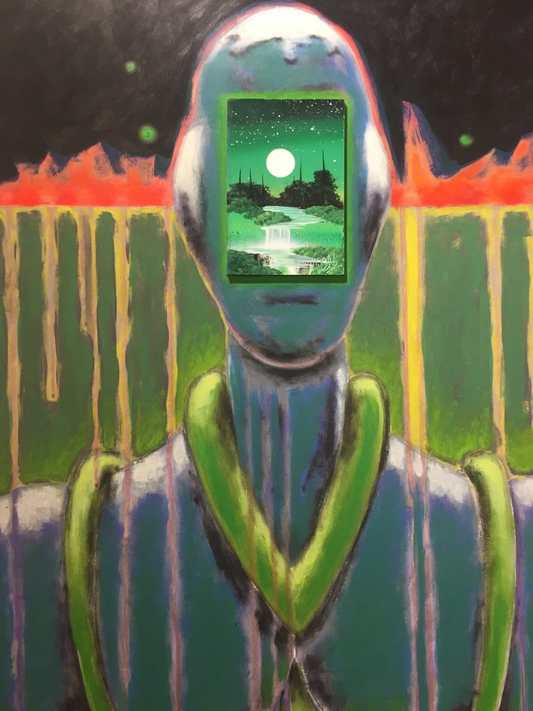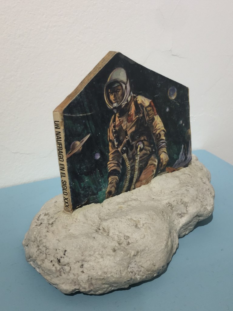 Una de las series expuestas es «Rolling planets«, de 2007, donde crea bandas de rock extraterrestres, dibujos acompañados por reseñas que comentan sus características musicales en función de su planeta de procedencia.